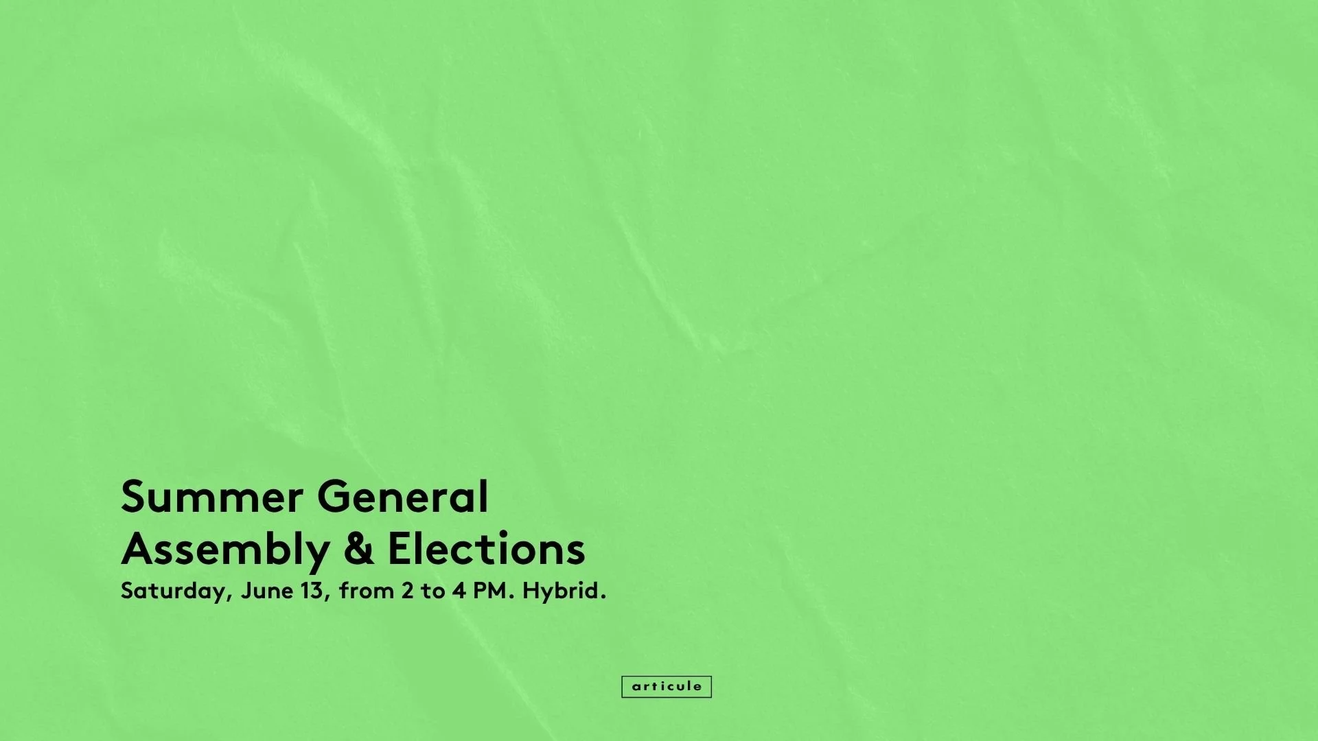 Voting will take place in person at articule, in person and online (via Zoom) during our Summer General Assembly on Saturday, June 13, 2025, from 2 - 4 PM. You must register in advance.
