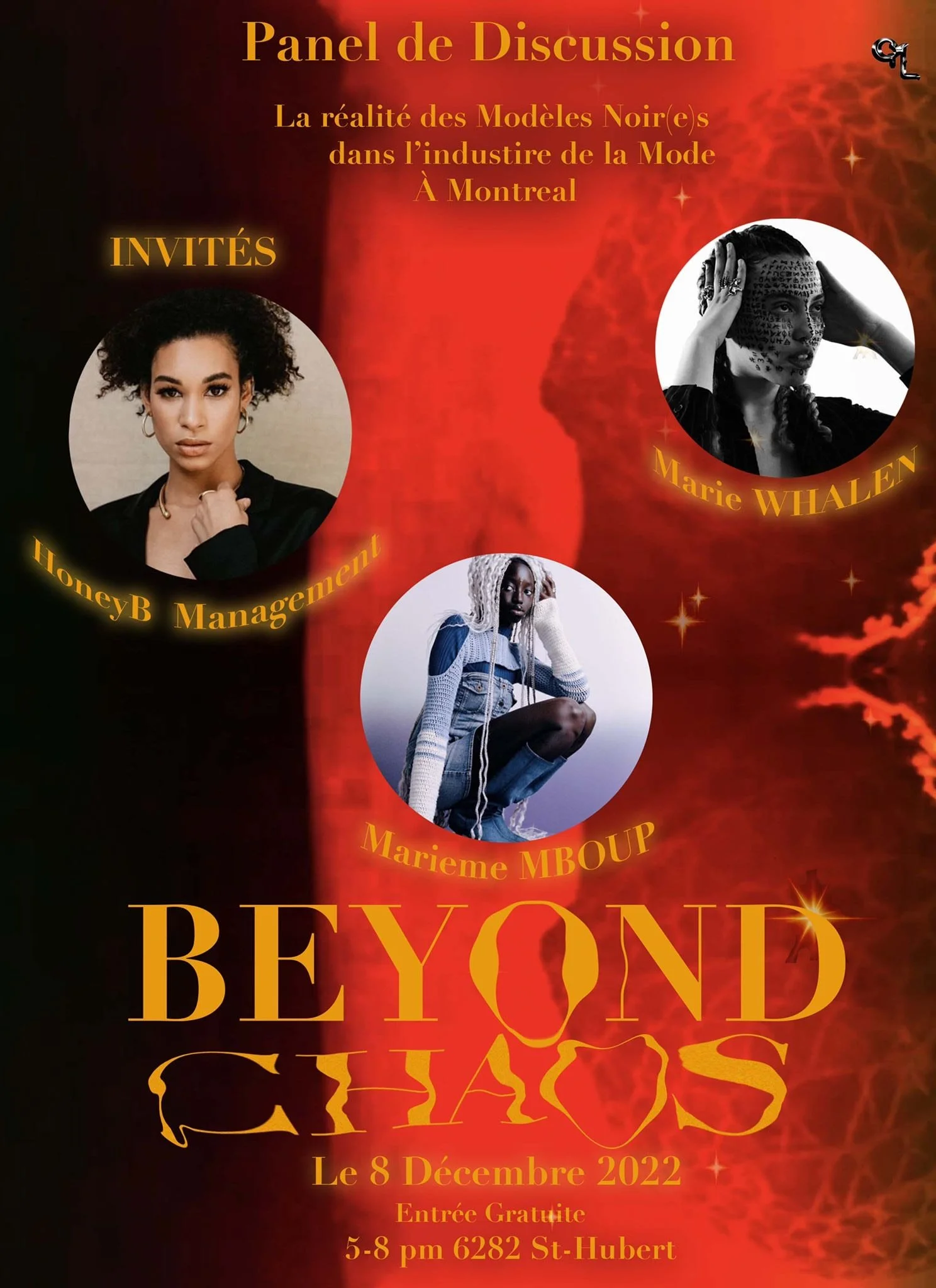 Following the screening, OML STUDIOS will present a panel discussion on the Chaos Fashion Show and the representation of black modeling in Montreal. This panel will reflect on the fashion industry by considering how to encourage the selection of more black models and hire more black professionals in the Montreal fashion industry. With the panelists, HoneyB Management, Marieme MBOUP and Marie WHALEN.