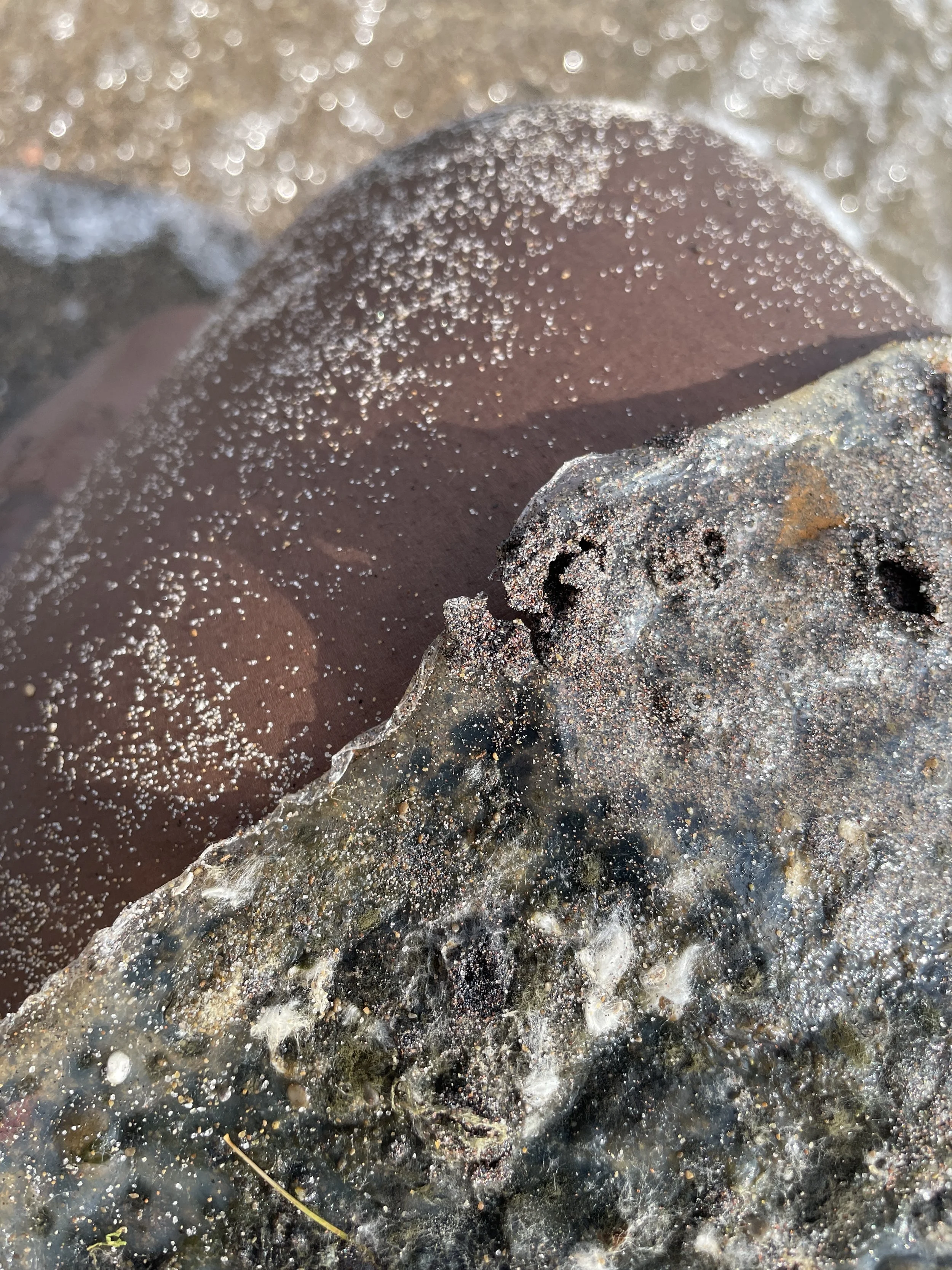 This project traces a queer and decolonial genealogy through sensory narratives rooted in the landscapes between Martinique and Quebec. Through an immersive and evolving installation blending sound, text, bioplastics, organic objects, and images, the work proposes a living laboratory where speculative fiction, guided meditation, and aquatic stories intertwine. The exhibition invites a bodily and collective experience, transforming visitors into an integral part of a shifting queer ecosystem.
