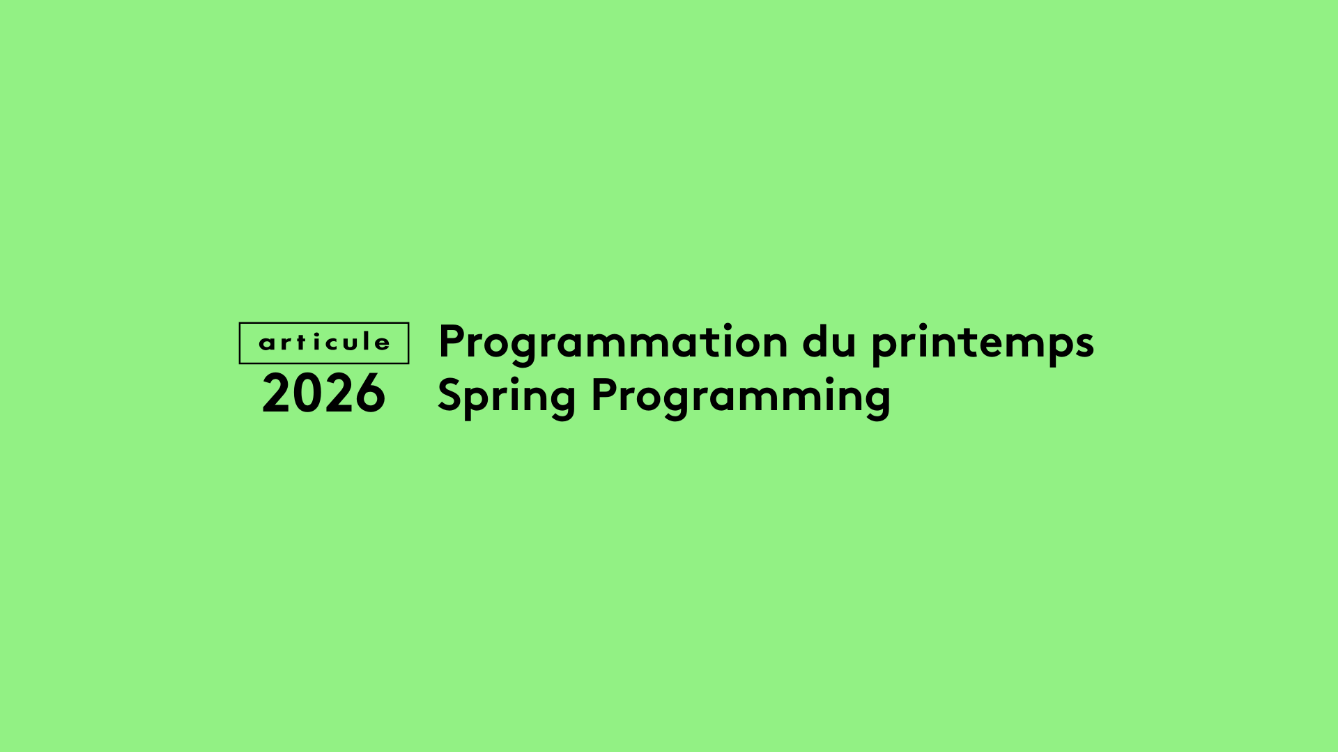 articule est heureux de présenter sa programmation publique pour le printemps-été 2026. Tous nos événements sont gratuits et ouverts au public. Suivez nos comptes sur les réseaux sociaux (Instagram, Facebook et Mastodon) pour obtenir les dernières informations.